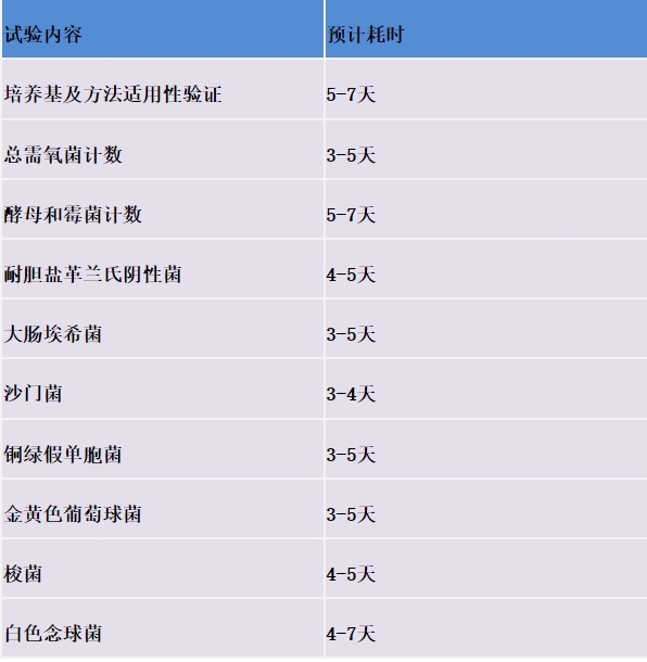 總需氧微生物、酵母和霉菌計(jì)數(shù):10g或10ml